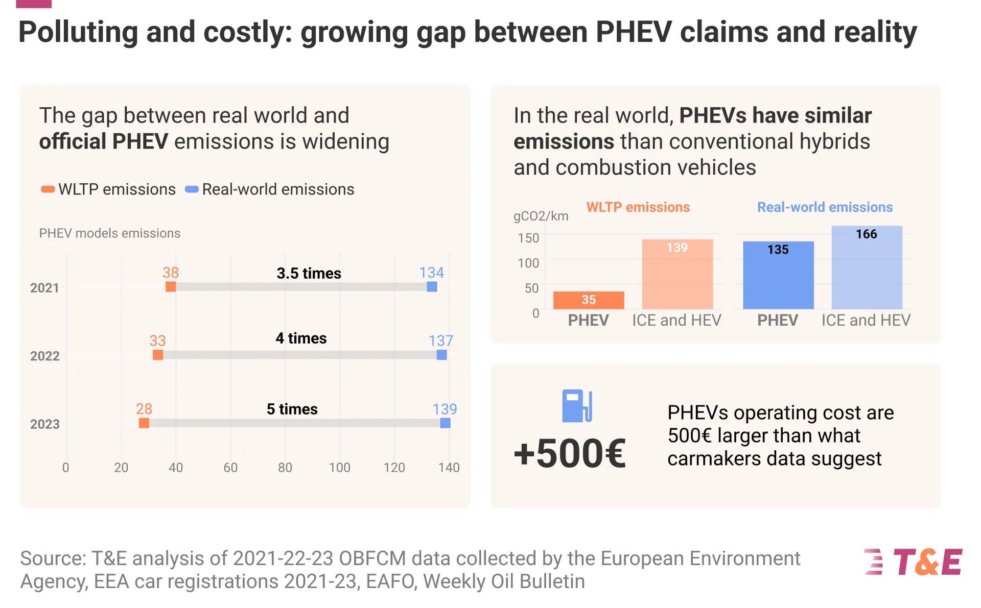 Ya he comentado en varias oportunidades estos «grises» en el mundo del automóvil en cuanto a sus motorizaciones. Pero ahora, Transport&Environment (Federación Europea de Transporte y Medio Ambiente), realizó un estudio con 800,000 vehículos (muestra significativa) y llegó a conclusiones concretas, medidas, de algo que ya sabemos o que en todo caso se discute habitualmente. Los vehículos PHEV (híbridos enchufables) emiten 5 veces CO2 (Dióxido de Carbono) que lo dicen las cifras oficiales del fabricante. Esa brecha era de 3.5 veces en 2021 pero se ha incrementado. ¿Estamos ante un PHEVgate?