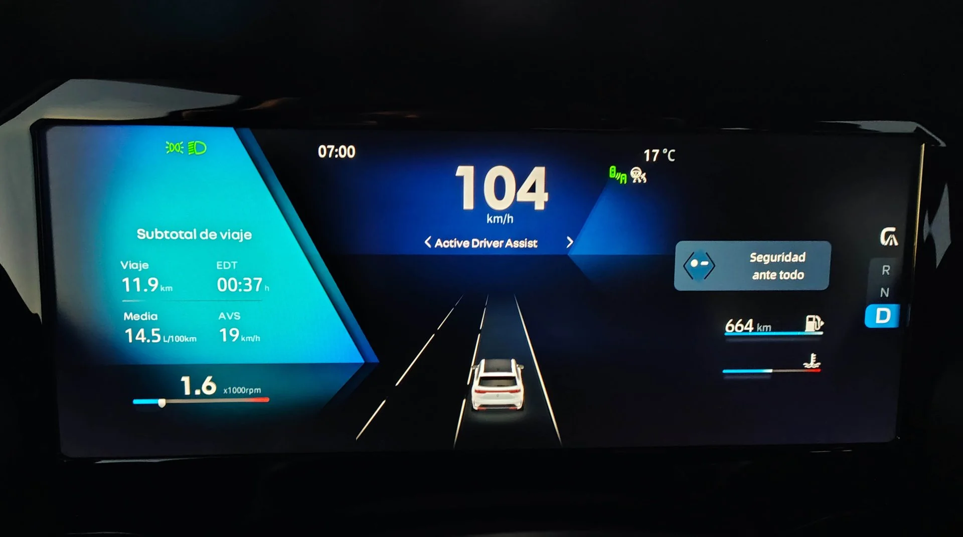 Puertas adentro, también buenas noticias. Mucho para destacar. En primer lugar, se respira un «aire premium». Si lo es o no en términos literales, es otra cuestión. Aunque no me gusta «todo pantalla», es lo vigente hoy y las 2 «secundarias» están muy bien integradas, resultando del pasajero solo visible para él, no molestando al conductor (parece apagada). Atajos manuales para la climatización (bien) y un minimalismo sin exagerar. Rara forma del botón de arranque. Tablero con muy buena calidad visual, aunque con poca info, y sobre todo poca personalización. No se puede ver (o yo no lo encontré) velocímetro y tacómetro en formato redondo, símil agujas, como sí tienen otros modelos. Siendo electrónico, creo costaba poco y nada agregar una vista opcional más tradicional. Salvo eso, me pareció bien el conjunto. Pantalla central rápida, accionable con movimientos al estilo smartphone, aunque no mucha información del auto. Bien por la rueda que permite elegir el modo de conducción entre varios (ECO, COMFORT, SPORT, OFF ROAD, etc., y hasta un AI, Inteligencia Artificial…).