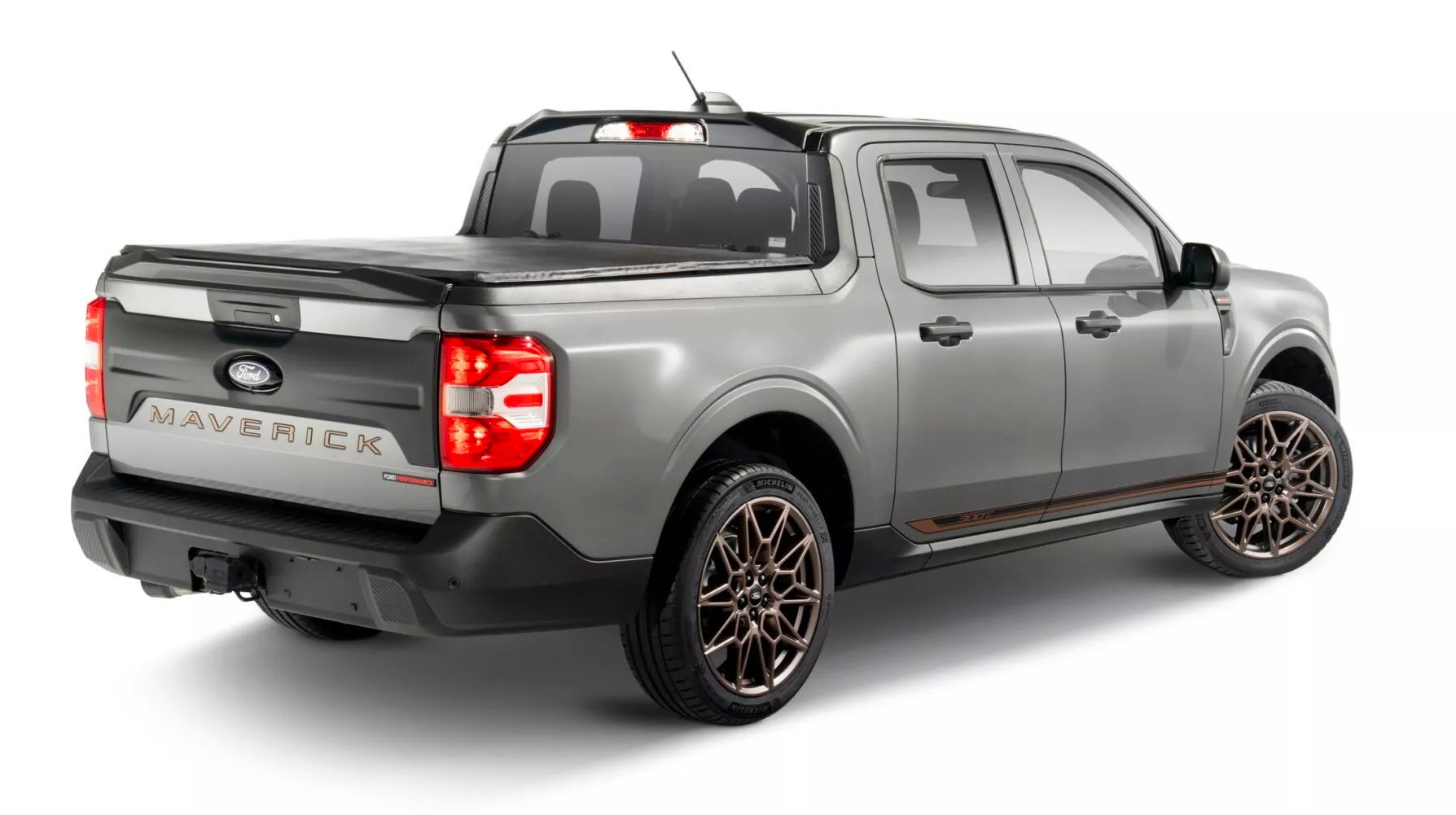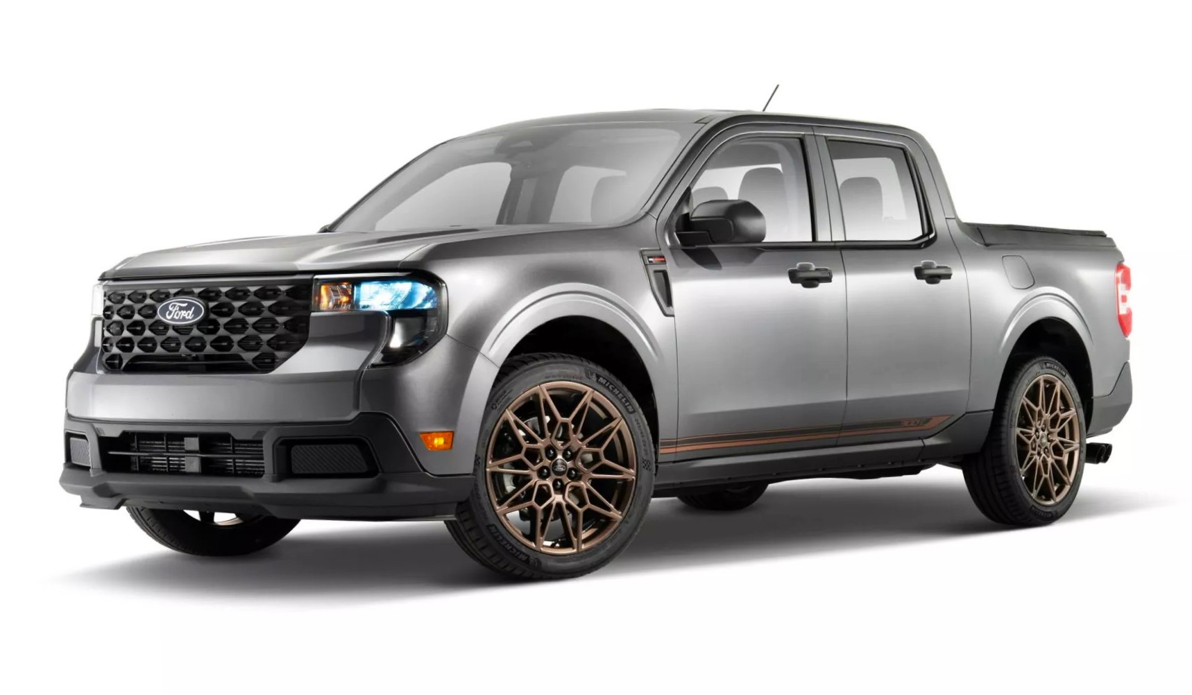 También en lo visual, claro. Además del menor despeje, nuevas llantas de 20″ heredadas de la coupé, con neumáticos Pirelli P-Zero 245/45R20. Cambios en parrilla, paragolpes, distribución interna de ópticas, faros traseros y varios aditamentos aerodinámicos, además de un alerón trasero. Un modelo «street» como los llaman en Estados Unidos. Personalmente no le veo mucho sentido a estas presentaciones (sí a una Raptor, por ejemplo), pero sí tienen su mercado en aquel país. Por ahora concept, derivará en un kit para los poseedores de Maverick.