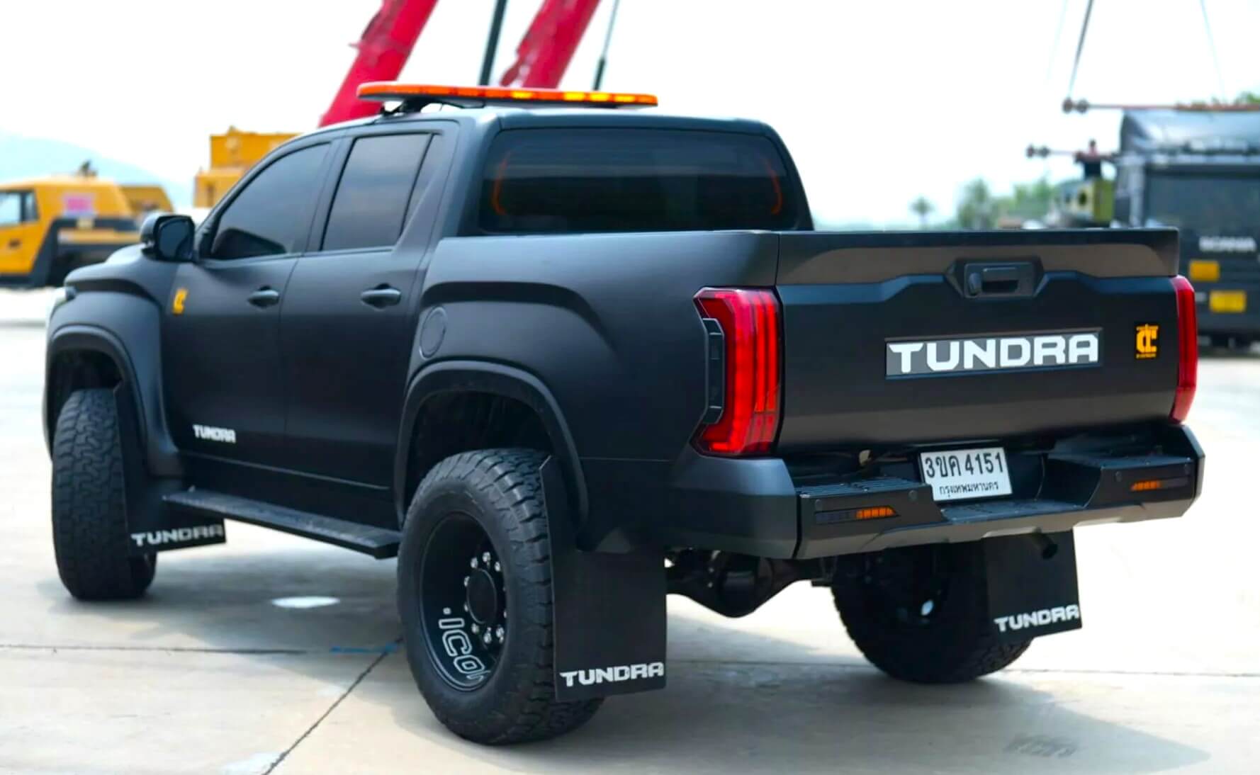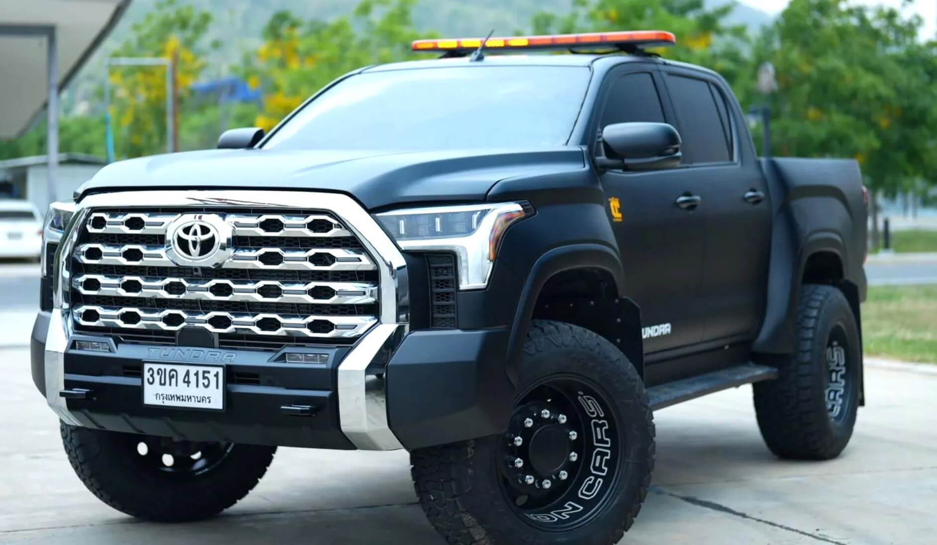 El kit cuesta unos equivalentes USD 12,000 en aquel mercado y mecánicamente solo eleva el despeje al suelo y cambia llantas y neumáticos. Visualmente todo el sector frontal y el posterior, con un resultado, subjetividad mediante, bastante logrado, teniendo en cuenta las limitaciones de la plataforma vieja y los casi seguros pocos recursos destinados a I+D. Claro, mirándola desde el lateral aparecen algunas desproporciones inevitables. El motor no es el V6 de 415 CV de Tundra, sino el conocido 2.8 diesel de la Hilux. El kit se adapta a las Hilux post 2012, es decir a 2 generaciones.