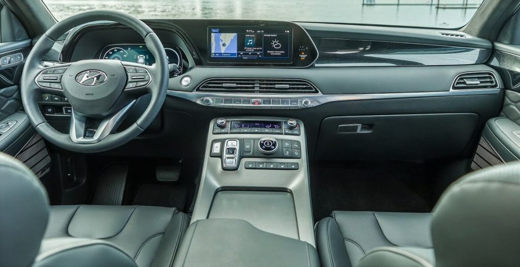 Estéticamente, dividimos el rubro en 2: el sector frontal y el resto. De frente resulta controvertido, lo mismo que los últimos diseños de la marca como el Venue, el nuevo Creta, el atractivo Elantra, y hasta colocaría en este grupo al pequeño i10 y al espectacular (y polémico, en partes iguales) Sonata 2021; todos ellos presentados en Automotiva. Quizás Sonata 2021 resulte un poquito más «ortodoxo», digamos. Palisade muestra un aire a algunos de ellos en su trompa, con bastante de Kona también. Nueva parrilla Hyundai octogonal y con algunos trazos curvos, característica de la nueva imagen de la marca. El perfil («cuadradón», nos gusta) recuerda a algunos Cadillac (¿Escalade), con un diseño bien norteamericano. En el interior, un diseño moderno, no tan minimalista (preferimos así), con alta calidad percibida, gran consola central entre asientos, tablero digital y la infaltable pantalla táctil. Afortunadamente hay una incipiente tendencia en la industria automotriz a retornar a los comandos físicos para algunas funciones (climatización, por ejemplo). Interesante equipamiento en Seguridad.