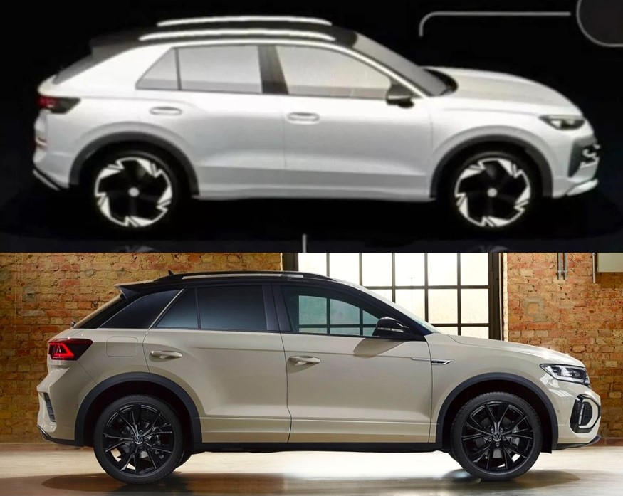 Pues bien, aunque no de manera oficial, aparecen las primeras y limitadas (en cantidad y en calidad) imágenes de la nueva generación T-ROC, bastante cercanas a aquella representación de principios de año. Ahora se muestra más deportivo, con una luneta más inclinada, capot más recto, voladizos algo más largos, manijas (más) embutidas, un pilar «C» más ancho, entre lo más notorio desde el lateral. En el frente, la nueva imagen Volkswagen con un curioso reticulado que me recuerda a la Toyota Corolla Cross. Atrás cambios importantes, alineándose más aun con sus hermanos. Firma lumínica todo a lo ancho, faros más angostos, y todo más cerca de sus parientes ID. No hay imágenes del interior, pero podemos esperar, como en el actual, un diseño similar al del Golf 8.5 (8a generación post restyling), no tan futurista, pero más moderna.